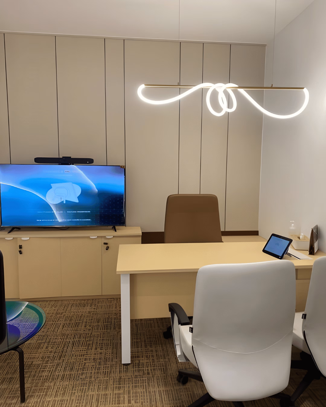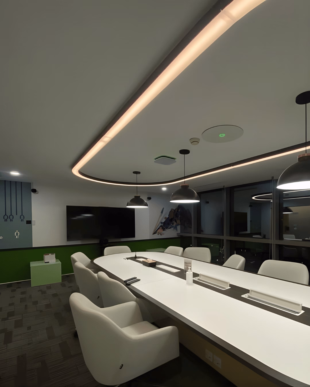 Completed the full installation of 8 meeting rooms ranging from small to large scale, equipped with advanced audio-visual solutions including DSP systems, Sennheiser microphones, Extron speakers, Logitech scheduling panels, and Poly video bars. This integrated setup ensures high-quality communication, optimized room management, and a modern collaborative working environment.