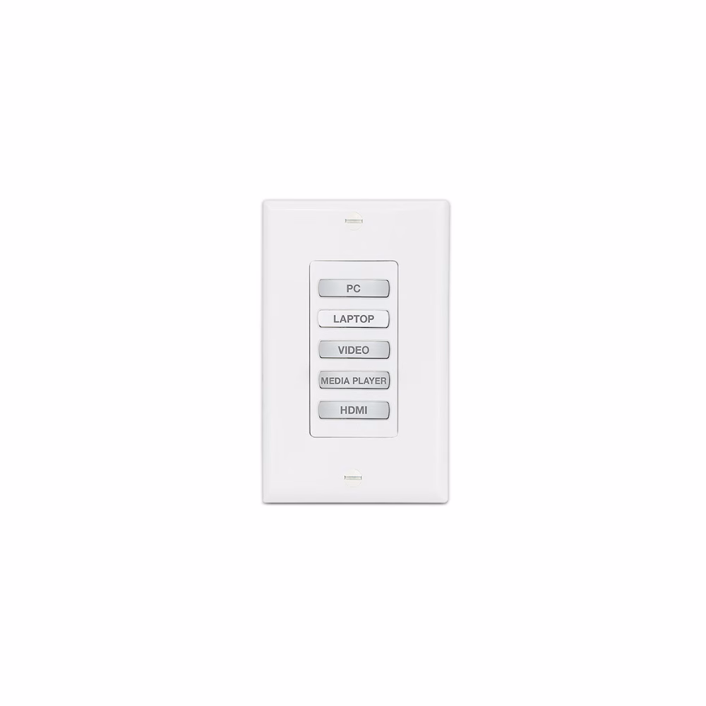 The Extron NBP 105 D Network Button Panel is a fully-customizable AV system control interface for Extron Pro Series control systems and HC 400 Series products. Network Button Panels connect to a control processor using standard Ethernet. These customizable, easy-to-use control panels work in conjunction with a control processor to perform a wide variety of AV system functions such as display On/Off, input switching, volume control, and much more. The NBP 105 D offers five customizable, soft-touch buttons that are backlit for easy operation in low-light environments. Network Button Panels feature the convenience of PoE. The NBP 105 D mounts in a single gang junction box and includes black and white decorator-style wallplates and mud ring.