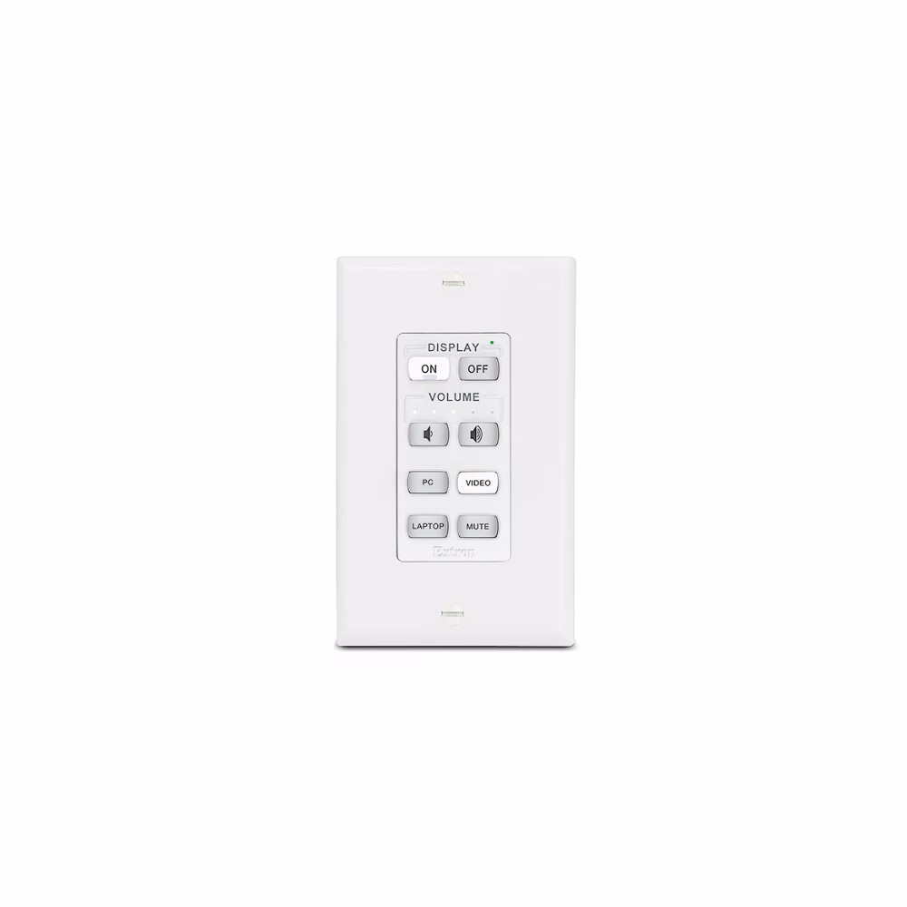 The Extron NBP 108 D Network Button Panel is a fully-customizable AV system control interface for Extron Pro Series control systems and HC 400 Series products. Network Button Panels connect to a control processor using standard Ethernet. These customizable, easy-to-use control panels work in conjunction with a control processor to perform a wide variety of AV system functions such as display On/Off, input switching, volume control, and much more. The NBP 108 D offers eight customizable, soft-touch buttons that are backlit for easy operation in low-light environments. Network Button Panels feature the convenience of PoE. The NBP 108 D mounts in a single gang junction box and includes black and white decorator-style wallplates and mud ring.