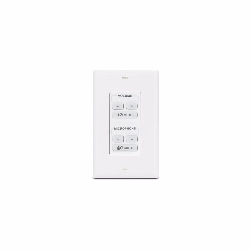 The Extron NBP VC2 D Network Button Panel is a fully customizable AV system control interface with dual volume controls for Extron control systems or HC 400 Series products. This convenient, easy-to-use control panel works in conjunction with a control processor using standard Ethernet and provides system volume and microphone level controls within a room. The NBP VC2 D offers six customizable, soft-touch buttons that are backlit for easy operation in low-light environments. Bright LEDs provide at-a-glance level indication for both volume and microphone controls. The PoE-powered NBP VC2 D mounts in a single gang junction box and includes black and white decorator-style wallplates and a mud ring.