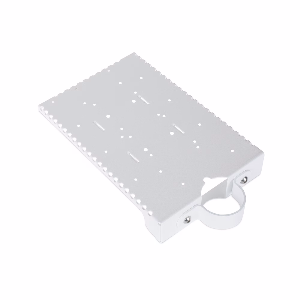 The Extron PMK 155 Low Profile Pole Mount Kit securely mounts one half-rack, two quarter-rack, or four eighth-rack width products, plus an external power supply, to a projector ceiling mount pole or Extron’s Cable Cubby 1252 MS Matching Surface and Cable Cubby F55 Edge cable access enclosures. It provides a convenient and secure mounting location out of sight, above the display device. Alternatively, it may be installed beneath a top surface on the Cable Cubby® enclosure. The PMK 155 accommodates products such as the XTP SR HD 4K scaling receiver for XTP Systems®, MPA 601 mono power amplifier, DTP HDMI 4K 230 Rx twisted pair receiver for DTP® Systems, and PS Series desktop power supplies. Available in a white or black powder coat finish.