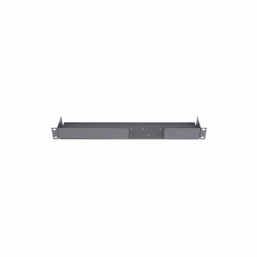 The Extron RSF 123 Rack Shelf Kit holds up to four quarter-rack width, or eight eighth-rack width, 1U high, Extron products side by side. The shelf is 3.5 inches (8.89 cm) deep and includes three false faceplates: one eighth-rack width, one quarter-rack width, and one half-rack width which are used to hide open slots once product is placed on the shelf. The shelf is designed so that the underside of products mount to the shelf using the included hardware. Available in a gray powder coat finish.
