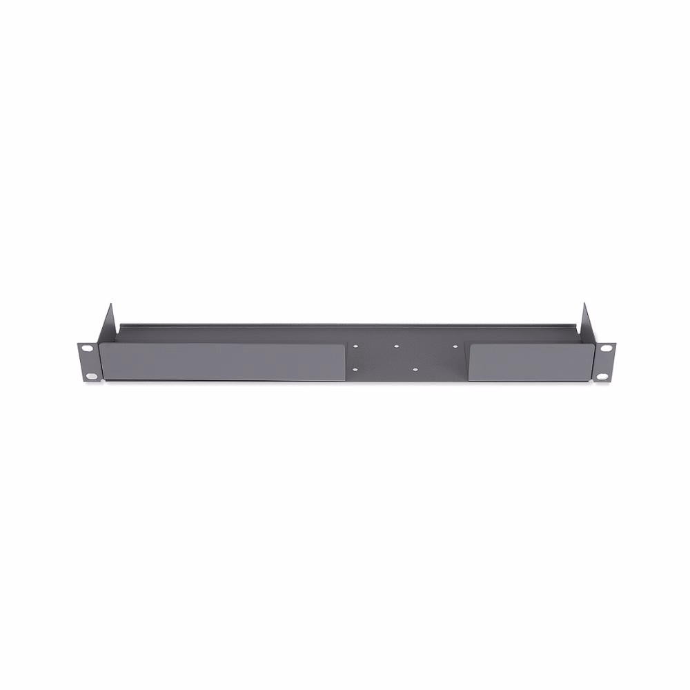 The Extron RSF 123 Rack Shelf Kit holds up to four quarter-rack width, or eight eighth-rack width, 1U high, Extron products side by side. The shelf is 3.5 inches (8.89 cm) deep and includes three false faceplates: one eighth-rack width, one quarter-rack width, and one half-rack width which are used to hide open slots once product is placed on the shelf. The shelf is designed so that the underside of products mount to the shelf using the included hardware. Available in a gray powder coat finish.