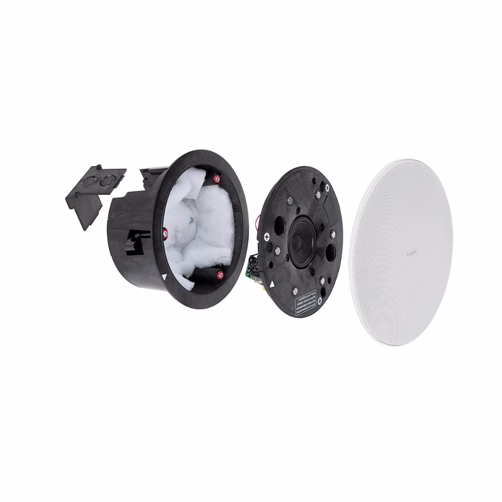 The 3” (76 mm) full-range driver features a wider and smoother frequency range of 65 Hz to 20 kHz and is engineered with an extremely wide and well controlled 165° conical dispersion. This design reduces beaming of mid and high frequencies directly under the speaker. Vocal intelligibility is critical for voice lift applications, and the SF 3C LP provides excellent voice clarity. A power rating of 32 watts continuous program also gives this speaker plenty of headroom for music reproduction.