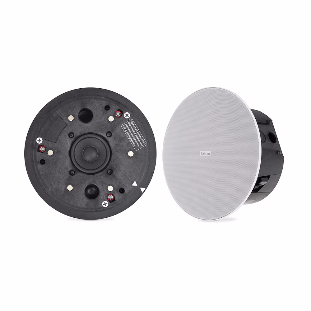 The Extron SoundField® XD model SF 3C LP is a 3” full-range ceiling speaker featuring a 4" (102 mm) deep composite back can for use in plenum rated ceiling environments. This low profile speaker is ideal for ceiling installations with tight above-the-ceiling space issues, such as air handling ducts installed close to the ceiling. The SF 3C LP offers 8 ohm direct connection to power amplifiers and can be easily wired in parallel for 4 ohm amplifier operation.