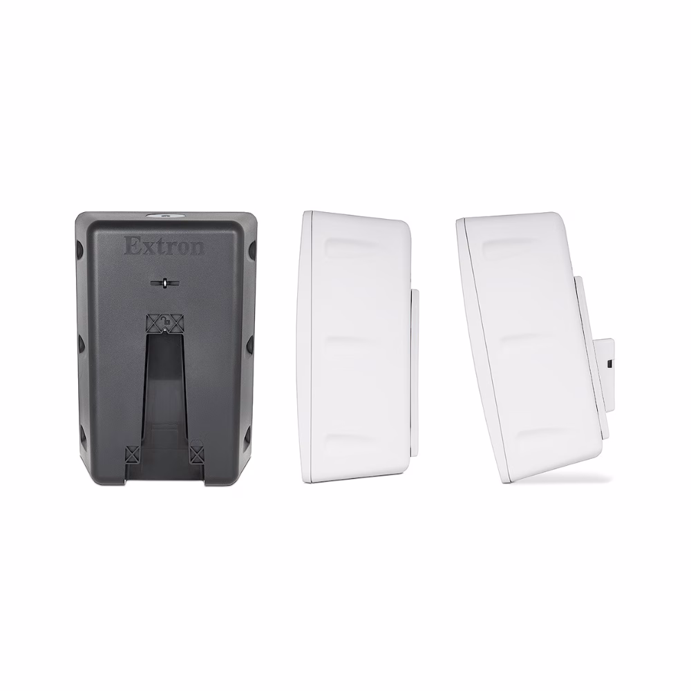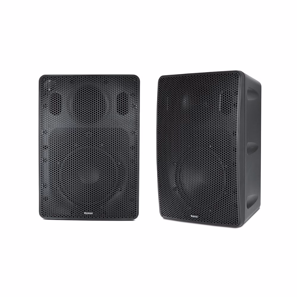 The Extron SM 28 SpeedMount® Surface Mount Speaker is a two-way speaker with a patented, concealed wall mounting system. It features an 8" (203 mm) woofer with dual tuned ports and a 1.1" (28 mm) tweeter. The SM 28 provides a frequency range from 59 Hz to 22 kHz, and a power rating of 90 watts continuous pink noise, 180 watts continuous program capacity. The Extron-exclusive mounting system is designed to accommodate division-of-labor installations and save costs. The SM 28 is available as an 8 ohm model, and an SM 28T version which can operate in 8 ohm direct as well as 70 volt and 100 volt modes. The SM 28T features a six-position power tap selector for up to 64 watts, which can conveniently be accessed through the grille from outside the speaker.