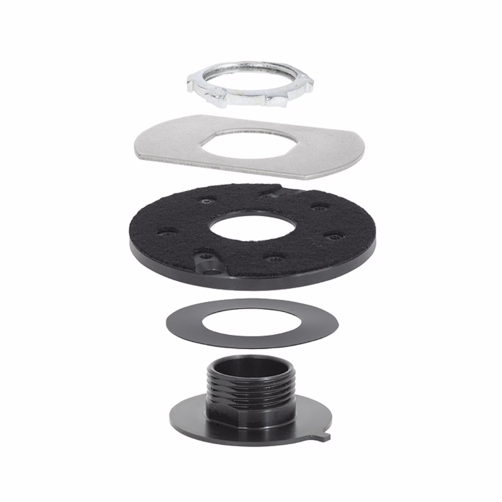 The SMA-1 Swivel Mount Adapter is designed for use with the SMB 1 and SMB 303 Surface Mount Boxes and select tabletop TouchLink and TouchLink Pro touchpanels. It provides a method for rotating the box to provide easy access for multiple users. The SMA-1 provides multiple stop points so the installer can precisely determine the degree of rotation for easy access and prevention of cable strain and tangling. The SMA-1 elevates the surface mount boxes or tabletop touchpanels slightly to prevent wear and damage to the surface on which it is mounted.