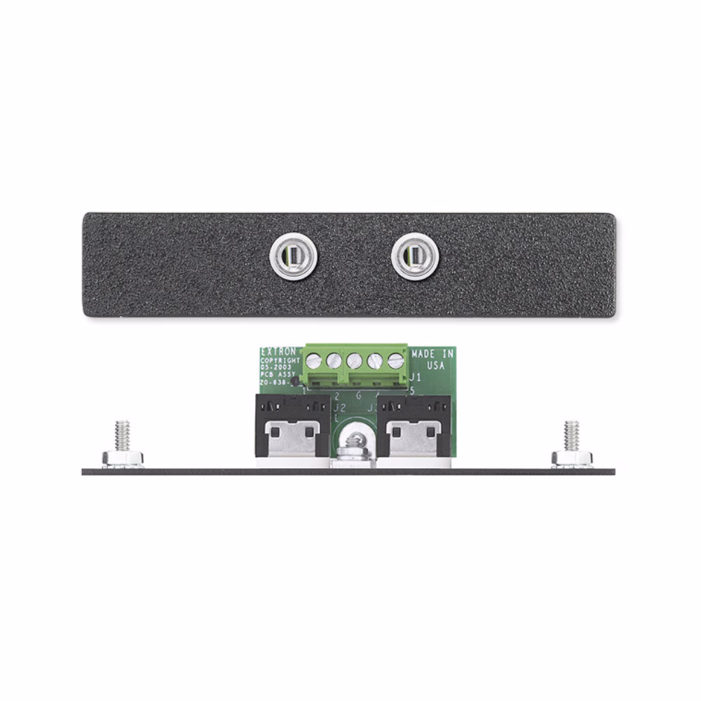 Extron offers a wide selection of passive AAP modules with audio, video, phone, data, power, and control connectors. Active modules are available for audio buffering, video line driving, twisted pair transmission, control and power output. An assortment of AAP mounting products are available that let you place the connectivity and control points in the optimum locations whether that is in a wall, table, podium, floor box, or equipment rack.